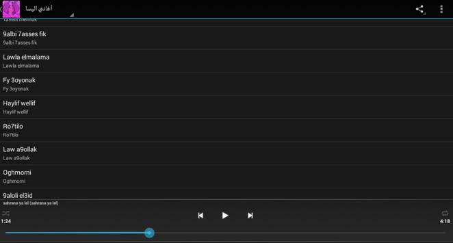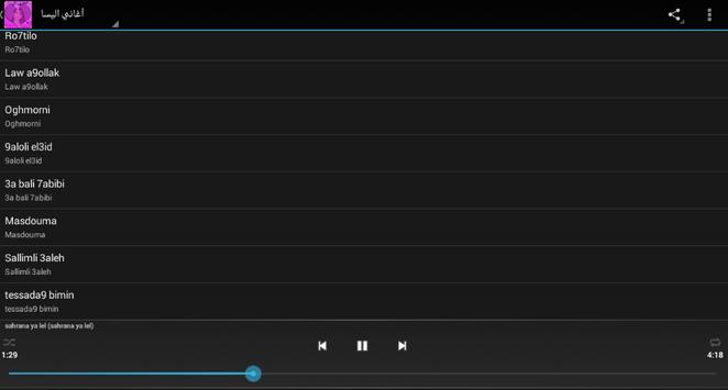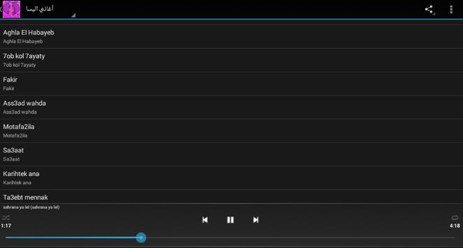 وهذا ما يحتوي عليه التطبيق من اغاني :