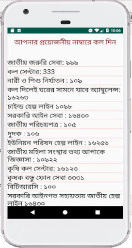 Emergency number service, all required numbers can be found here. There is a quick call. All Government Required.