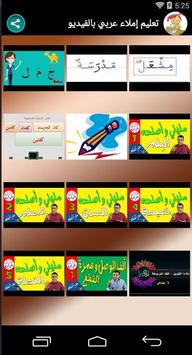 ويعتمد تطبيق تعليم إملاء عربي بالفيديو على الشرح المفصل بالصوت والصورة لطريقة الكتابة العربية صحيحة ويضم تطبيق تعليم إملاء عربي بالفيديو ومن بين هذه الفيديوهات: