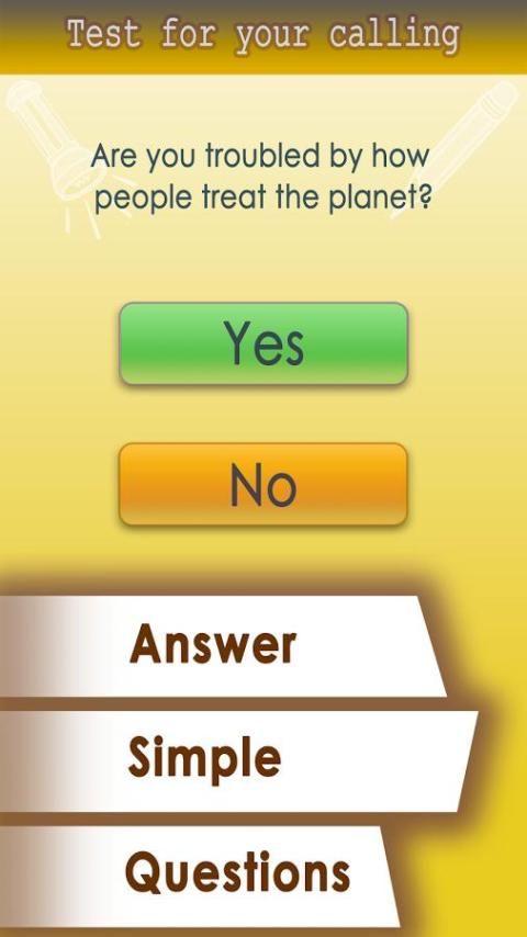 الحاجة إلى اختيار مسار حياتنا هو الأكثر انتشارا بالنسبة لنا، ونحن في بعض الأحيان لا نعرف الاتجاه الذي يجب ان نذهب. علماء النفس ومختلف الاختبارات النفسية تسمح لنا لكشف النقاب عن الحقيقة، ويمكن أن نحدد أي نوع من الطابع والمزاج والذكاء لدينا. مستندة على هذه البيانات والاستماع إلى الصوت الداخلي يمكننا أن نجعل خيارنا. سوف اختبار نفسي لدعوتكم تحديد أي نوع من السعي الحقيقي الذي ولدوا ل.