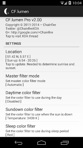 تتكيف مع الألوان الموجودة على جهاز Android بناء على موضع Sun، أو التكوين المخصص الخاص بك.