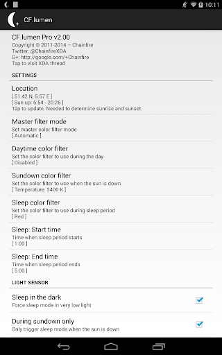 خلال ساعات النوم افتراضيا، يتم استخدام مرشح أحمر. حمراء سلالات عينيك الأقل، وتحتفظ برؤيتك الليلية.