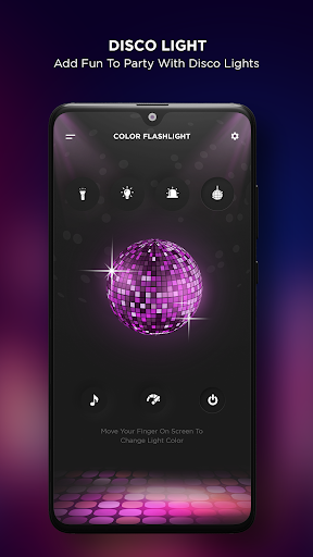With Free Color Flashlight you can party lights everywhere and at any time! Disco Light is the ultimate party lights application! The app has many colors screen light. You can use change Color Flashlight as disco light red light green light led flashlight or strobe Light. You can change the speed of flashlight as you like. The screen light flashes with different colors as fast as you want