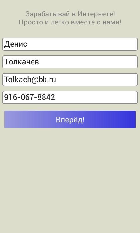 مرحبا بكم في المال جعل!. لدينا خدمة - وسيلة رائعة لكسب المال على الانترنت، دون استثمار أي شيء وليس الأرباح teryaya.Sut هي انك تهز الخاص بك التطبيقات المجانية مثيرة للاهتمام مع جوجل تلعب على الروبوت واكتشاف الجهاز الخاص بك، ونحن في المقابل يدفع لك مقابل كل مفتوحة تطبيق بقدر 5 روبل! الحق ليس سيئا؟ في المتوسط، كل تطبيق يزن في في 3 MB. (بعض أكثر، وبعضها أقل) لمدة نصف ساعة يمكنك أن تكسب الكثير دون اجهاد 200، وأكثر من ذلك حتى روبل! كل يوم ونحن نقدم 50 روابط جديدة إلى تطبيقات مجانية!، والهز على ذلك، يمكنك كسب نقاط. لكل وصلة سوف تحصل 5 نقاط. حصل على النقاط التي يمكن أن نستنتج، وإعادة شحن هاتفك المحمول. نقطة واحدة تساوي دولار واحد. الحد الأدنى للمبلغ الانسحاب - 25 روبل. نأخذ في الاعتبار أنه يمكنك سحب الأموال مرة واحدة فقط في اليوم. في وظائف rasshirienie المستقبل القريب وإضافة وظائف جديدة. يوفر برنامجنا مكافآت للزيارات اليومية. التخصيصات التي أنجزت بالكامل وكل يوم لمدة خمسة أيام تعطيك مكافأة 50 نقطة كسب المال.