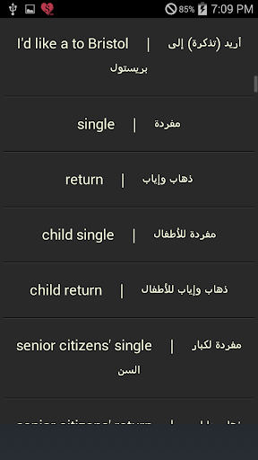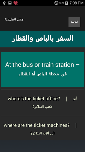 و في السوبرماركت و التسوّق و شراء ملابس و خدمات وتصليحات و في مركز البلدة أو المدينة و في مكتب استعلامات السيّاح و في مركز البريد و في المطعم و في المقهى و الشراب والطعام و المغادرة و خلال الإقامة و التسجيل و الحجز و الفنادق والإقامة و جوازات السفر والجمارك و السفر بالقارب و السفر جواً و السفر بالباص والقطار