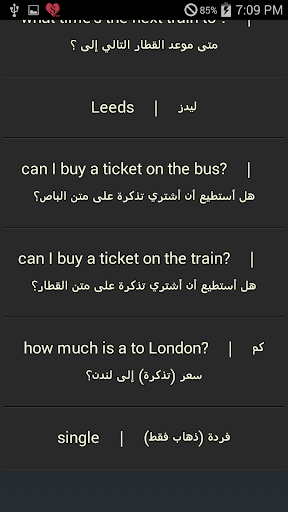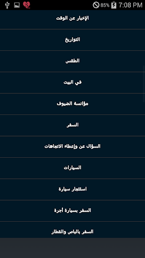 عبارات أساسية و تعابير أكثر شيوعاً و حالات الطوارئ و محادثة عامة و مصادقة الناس و العائلة والعلاقات و الاهتمامات و العمل و التعليم و الدين و المواعدة والغرام و ترتيب اللقاء و الوقت والتاريخ و الإخبار عن و السفر بسيارة أجرة و السؤال عن وإعطاء الاتجاهات و السفر و السيارات و اسئئجار سيارة و مؤانسة الضيوف و في البيت و الطقس و التواريخ الوقت