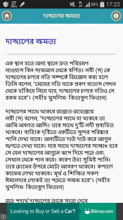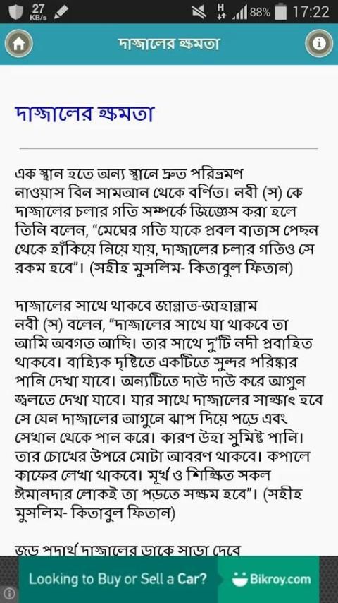 দাজ্জাল এর আবির্ভাব কেয়ামত এর বড় 10 টি লক্ষন এর একটি. এ বাংলা এপস্ এ দাজ্জাল সম্পর্কে বিস্তারিত আছে. আশা করি আপনাদের ভাল লাগবো.