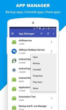 - التطبيقات: عرض جميع التطبيقات المثبتة في الجهاز. يمكنك إيقاف أو حذف التطبيقات ، حذف البيانات أو النقدية من التطبيقات ، التطبيق النسخ الاحتياطي كملف apk.