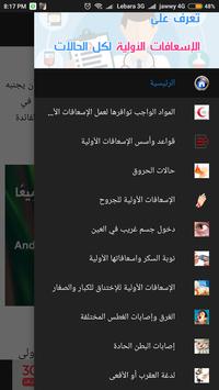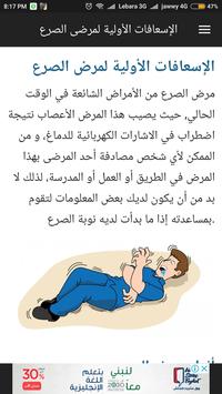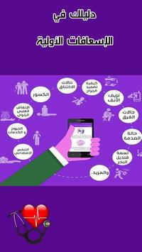 يحتوي التطبيق على دليل شامل للإسعافات الأولية حيث يتعرض الناس كل يوم إلى إصابات وأزمات ويحتاجون من يقدم لهم يد المساعدة بشكل فوري .. والإسعافات الأولية وطرق التعامل مع الحالات المختلفة هو علم لابد من الجميع التعرف عليه .. وأردنا من هذا التطبيق أن يكون لكم مرجع في حال حدوث إصابة أو مرض لشخص قريب منك لتتعرف على طريقة التعامل مع الموقف من أجل إنقاذ المريض ووقاية نفسك أيضاً من العدوى في حال أن كان المرض معدي .. كما ستتعلم في هذا التطبيق التعامل مع حالات مرضية مختلفة مثل الإسعافات الأولية لمصابي مرض الصرع أو لدغات العقارب والأفاعي أو حالات الحروق أو الجروح أو الغرق