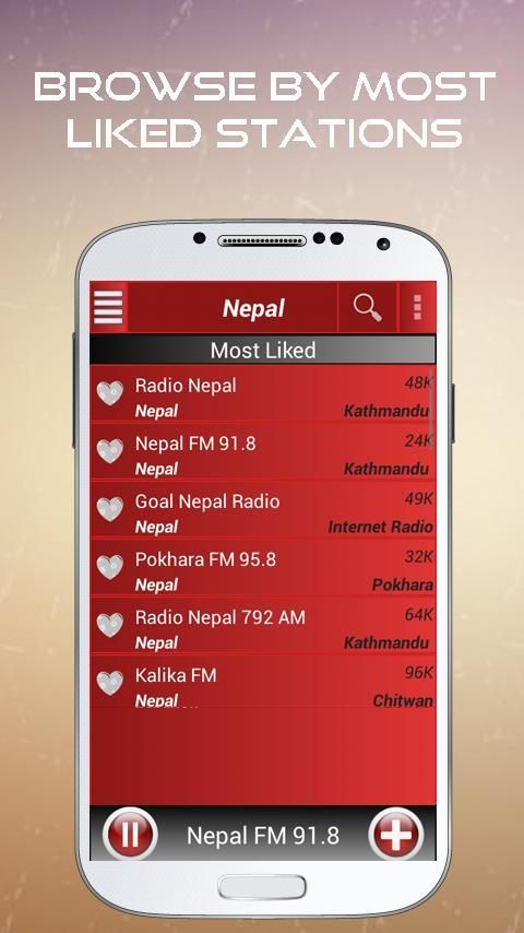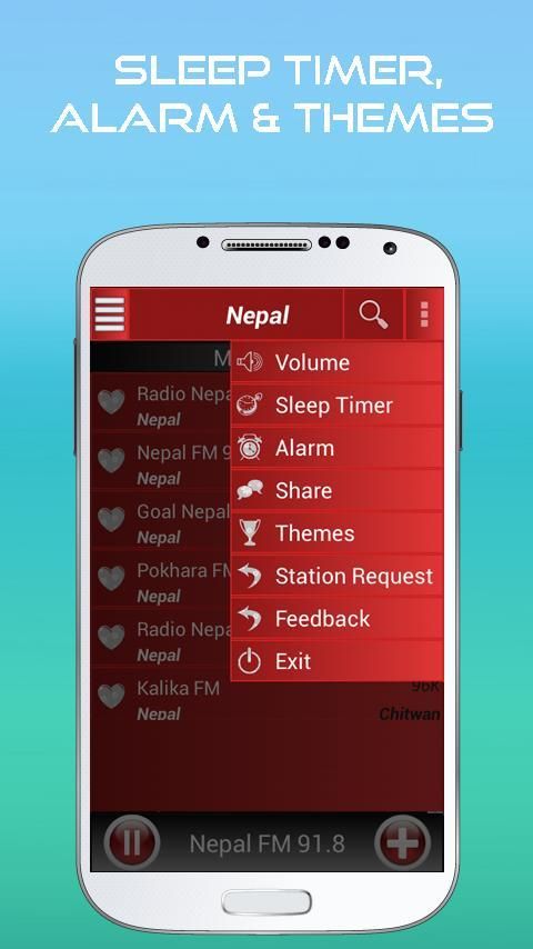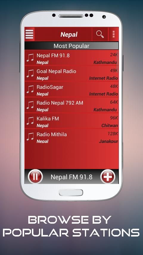 The best collection of online radios and FM radios from Nepal. More than 20 radio stations from Nepal. This app is loaded with favourites list, 6 color themes, alarm, sleep timer to auto shutdown FM after a time, sharing with friends, in-built volume control, background playing, retaining last played station on start. The radio stations currently in the app are listed below.