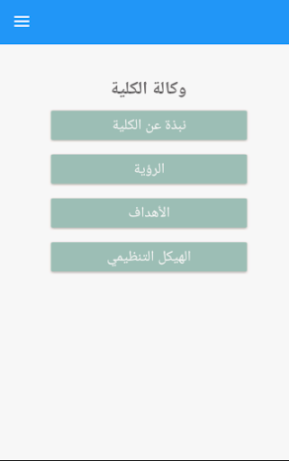 التطبيق يستعرض أقسام الكلية و معلومات التواصل .