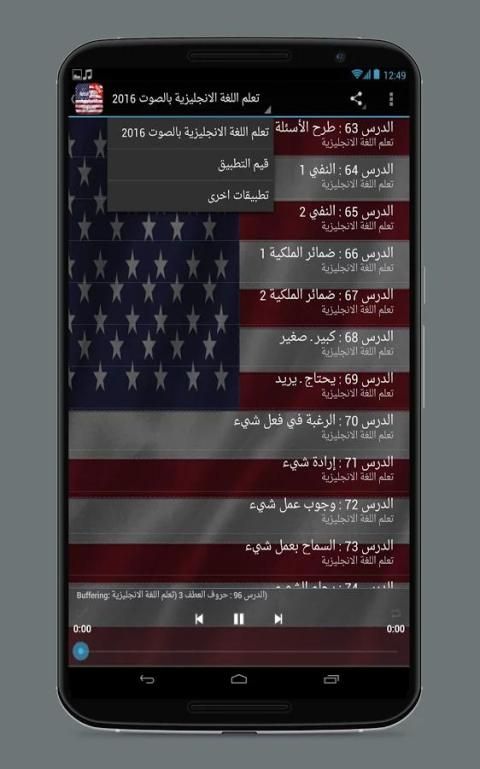 فالتطبيق يوفر لكم ازيد من 100 درس لتعلم اللغة الانجليزية بالصوت 2016