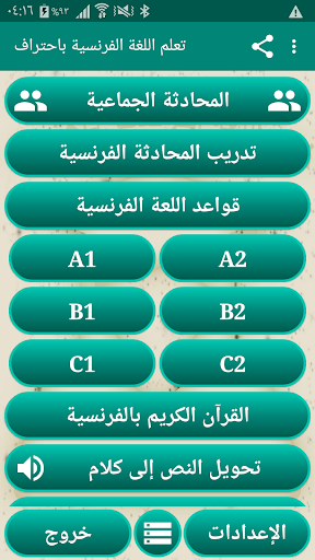 هو تطبيق شامل يحتوي على عدة أقسام وعدة محادثات مختلفه التطبيق يضم كل مستويات اللفه االفرنسية