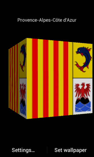 يعرض هذا LiveWallpaper مكعب ثلاثي الأبعاد، مع مناطق France Flags (Alsace، Anjou، Aquitaine، Auvergne، Béarn، Berry، Britgundy، Brittany، Catalonia، Catalonia، Catalonia، Catalonia، Cormagne-Ardenne، Corsica، Camuguese Cross، Dauphiné، Franche-Comté، Guadeloupe، Ile-de-France، Reunion، Languedoc-Roussillon، Lauburu الباسك، Limousin، Lorraine، Martinique، Maytte، MIDI-PYRÉNES، Nord-Pas-de-Calais، نورماندي، كاليدونيا الجديدة، إقليم الباسك، هولندا -باذاردي، Poitou-Charentes ، بولينيزيا الفرنسية، بروفانس ألب كوت دازور، رون ألب، سان بارتيليمي، سانت مارتن، سان بيير إت ميكيلون، أراضي سان بيير إت - سان بيير واند القطبية، تورايين، واليس وفوتونا وبريتاني تريسكيليون).