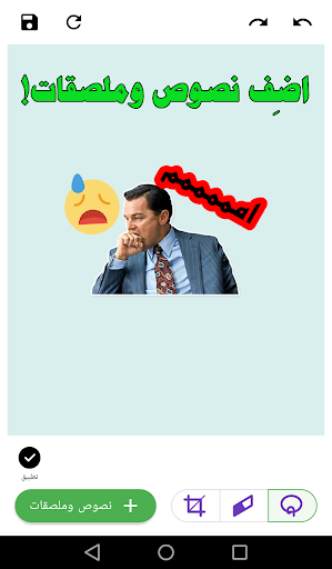 3-اضف صور من المعرض عن طريق الضغط على ايقونة "اضف ملصق"