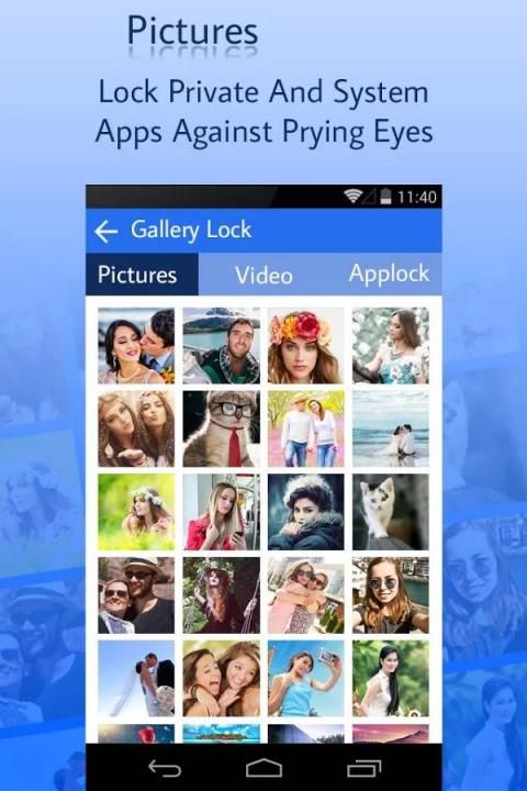 معرض قفل يمكن إخفاء أيقونة التطبيق والحفاظ على خصوصيتك آمنة تماما. معرض قفل يمكن أيضا إدارة مقاطع الفيديو الخاصة بك والصور بسهولة أكبر. معرض قفل يسمح لك لقفل كل ما عليك الصور ومقاطع الفيديو وراء password.It هو عملي، وسهلة وفعالة وخفيفة الوزن للغاية.