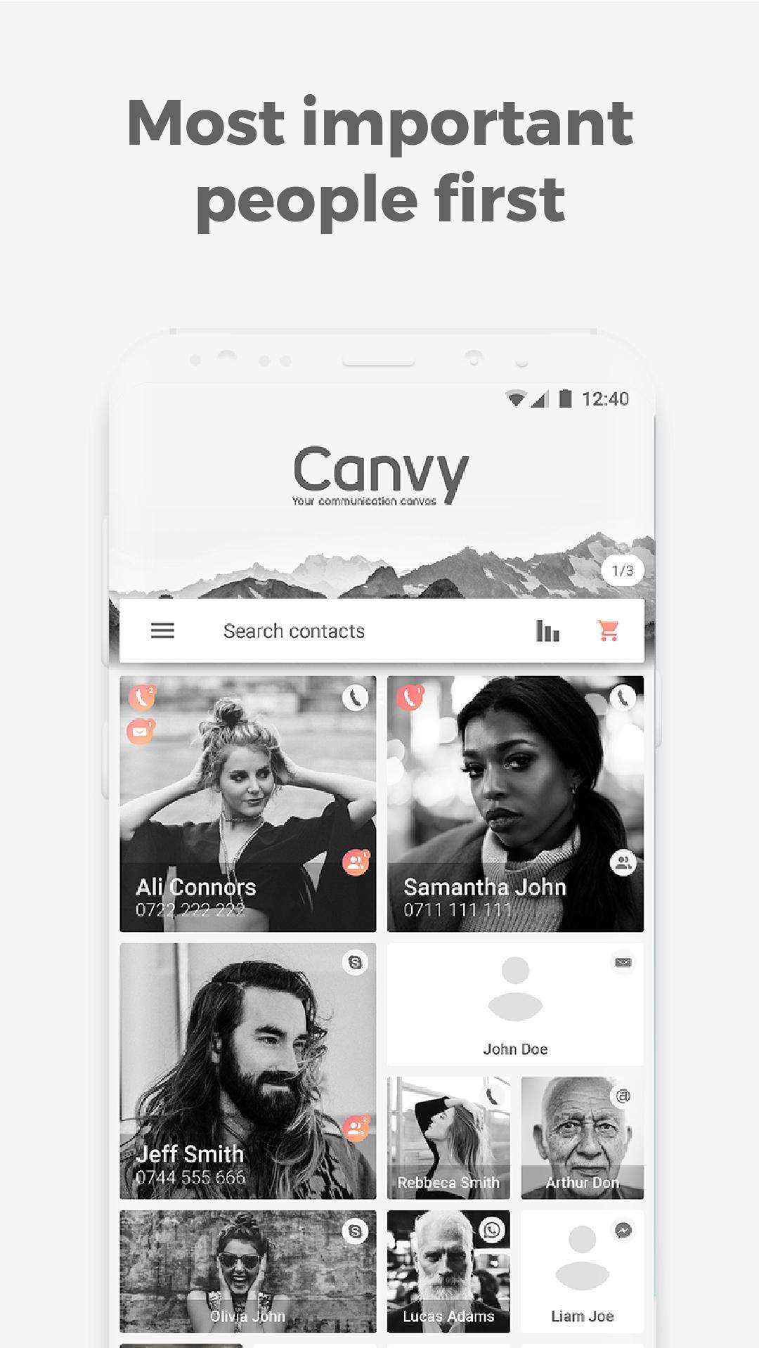 Canvy is the contact app that brings all the valuable information at your fingertips, for an enjoyable and personalized communication experience.
