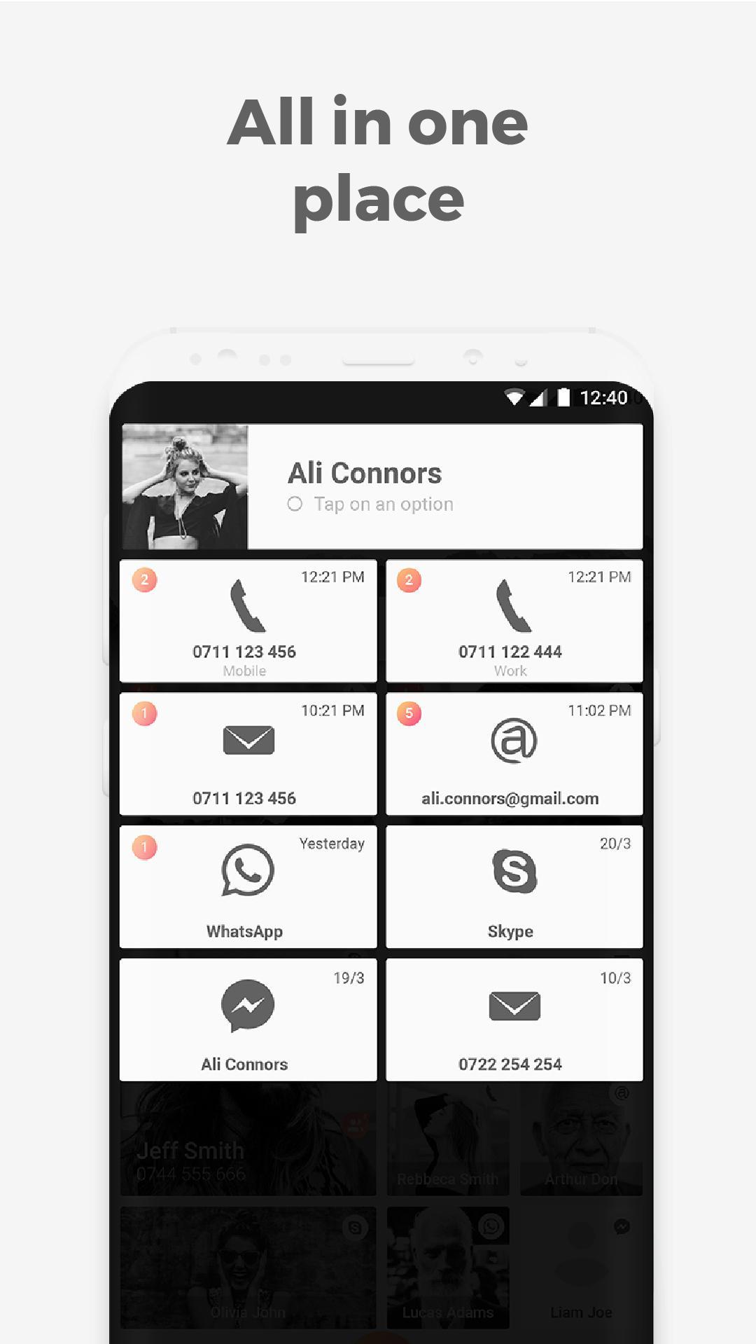 Our smart and adaptive contact app enables you to communicate in just a couple of taps, on multiple channels.