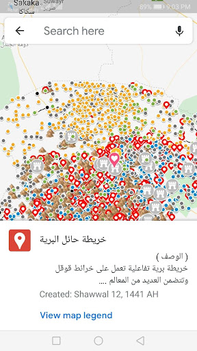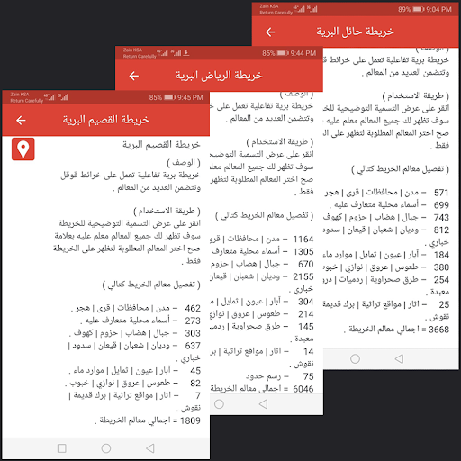 يمكن للمستخدم اختيار اي معلم من معالم الخريطة ليتم عرضة على خرائط قوقل ماب ومن المعالم الرئيسية لخرائط الصحراء .