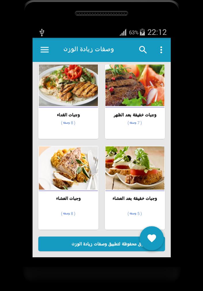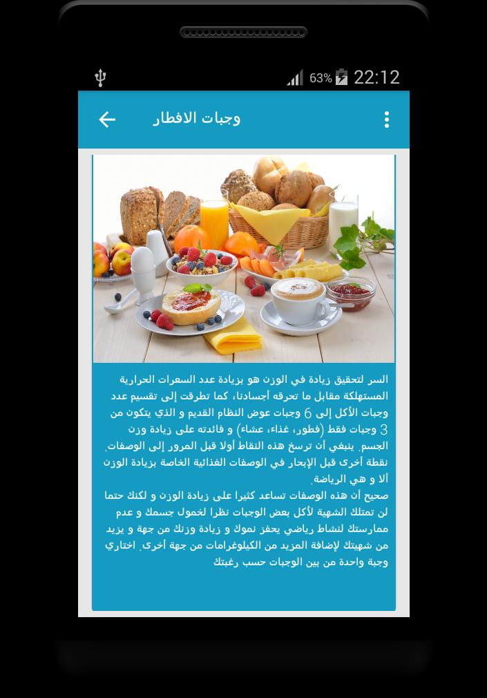 تطبيق يقدم محتوى غني بوصفات زيادة الوزن لمساعدة كل ما يعاني من مشكل الوزن والنحافة بالاضافة الى
