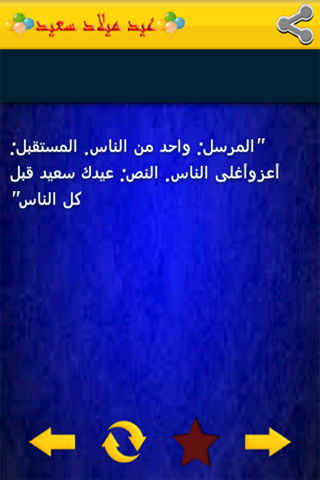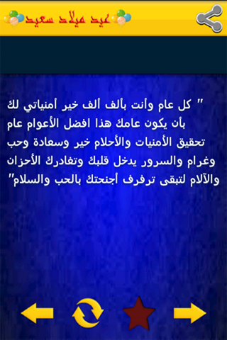 تطبيق يحتوي على كثير من رسائل أعياد الميلاد حيث يمكنك نشرها على الفيسبوك أو إرسالها كرسالة نصية. بين يديكم الكثير من الرسائل بخط واضح وسهل للقرائة.
