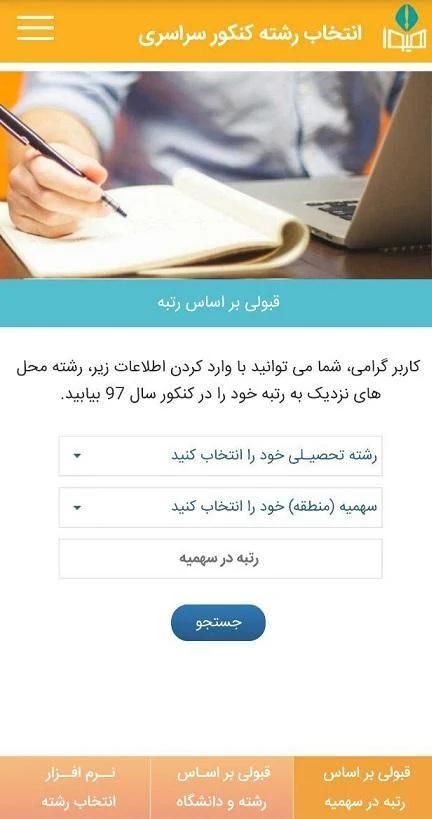 قم ببحث عن افضل تطبيقات اندرويد شعبية هنا! 20,000+ مستحدمين يحملون نرم افزار انتخاب رشته کنکور سراسری هیوا