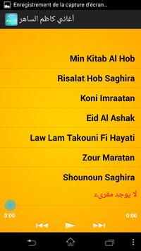 يحتوي التطبيق على مجموعة من أغاني كاظم الساهر، و المنوعات الموسيقية عربيه، من الحان و اغاني كاظم الساهر بدون نت