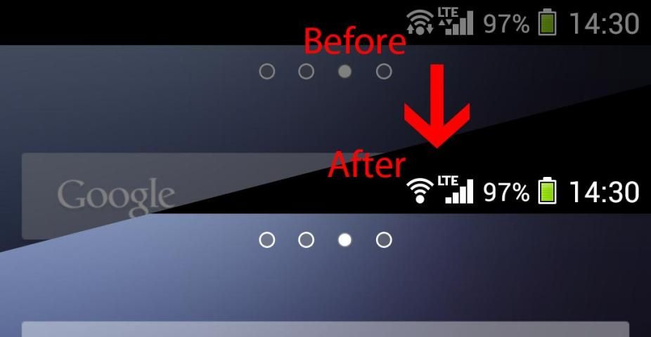إخفاء مؤشر الاتصالات الخلوية / Wi-Fi على شريط الحالة الخاص بك.