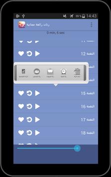 يحتوي التطبيق العديد من الرنات والاغاني والنغمات الجميلة المنوعة، رنات مضحكة جدا، رنات الطبيعة والعصافير، رنات ونغمات رومانسية، نغمات الحب، اغاني حزينة، رنات حزينة، مقاطع تركية، اغاني مسلسلات تركية، والعديد العديد... اكتشفها. يتميز التطبيق بكونك تستطيع جعل الرنة كرنة الهاتف، رنة رسائل، رنة تنبيهات كالواتساب، ويمكن اعادتها تلقائيا، تعمل بدون انترنت 3G 4G او ويفي wifi وهي مجانية.