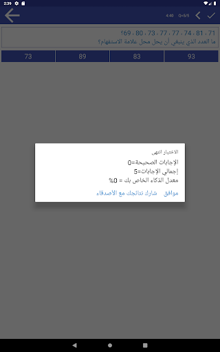 - يمكنك اختيار عدد الأسئلة والوقت لكل اختبار ذكاء.