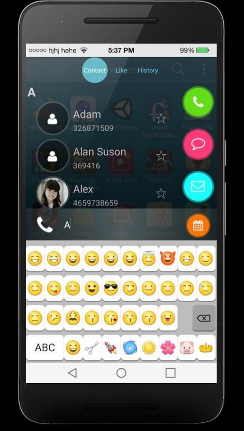 - إرسال رمز تعبيري، والملصقات بين جميع التطبيقات الاجتماعية مثل الفيسبوك، imessenger، الخ