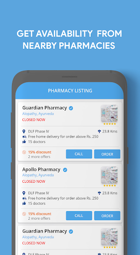 Search and access pharmacies near you. Get immediate responses on availability, pricing, discounts and substitutes from nearby pharmacies. Your medicines will be ready for pick up or have them delivered to your doorstep.