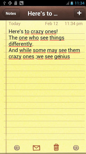 iNotes is an iPhone iOS 6 UI style note app to manage lots of notes and lists easily. Very cool UI like iOS 6 and easy to use. You can get the ExcitingiPhone user experience in android Phone!Major Feature:- Support iPhone iOS 6 UI Style - Support all iPhone Notes feature- Support same look and touch feeling with iPhone- Support search in all the notes- Support share and delete of the note- Support the note switch between previous and next in note edit screenGesture:- Support the iPhone gesture(slip from right to left) to delete the note in note listTag: iPhone Style, iOS, Record, NotesEnjoy it!This app is ad-supported. Search for 'iPhone 5 Notes Pro' for ad-free version.You can get more iPhone Style Apps in "iPhone Style Studio".If you meet any issue, welcome you email to iPhoneatandroid(at)gmail com!Thanks!
