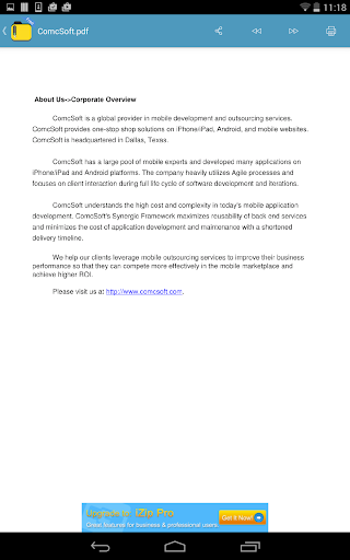 - فتح وعرض العديد من أنواع المستندات: PDF، TXT، RTF، JPG، GIF، PNG، مقاطع الفيديو، صوتيات، إلخ ..