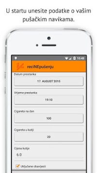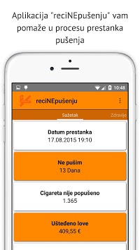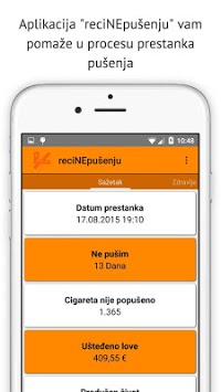 "reci NE pušenju" aplikacija donosi statistike, koliko ste uštedili, koliko niste popušili cigareta, koliko ste produžili vaš život i neke od zdravstvenih statistika!