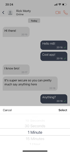 يمكن برمجة الرسائل ، بما في ذلك الصور ومقاطع الفيديو ، إلى التدمير الذاتي تلقائيًا من كلا الجهازين المشاركين.يضمن التطهير عن بُعد لأي بيانات يتم إرساله أنه يمكنك حذف كل ما ترسله إلى شخص ما إلى شخص ما ، كما لو أنه لم يكن موجودًا على الإطلاق.