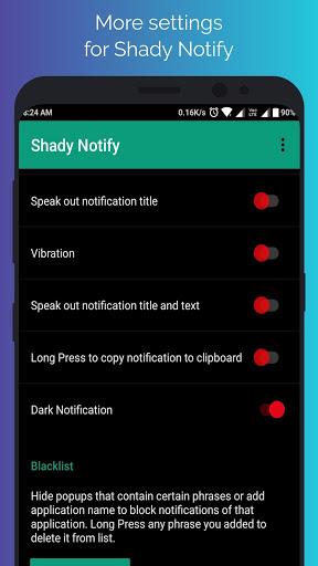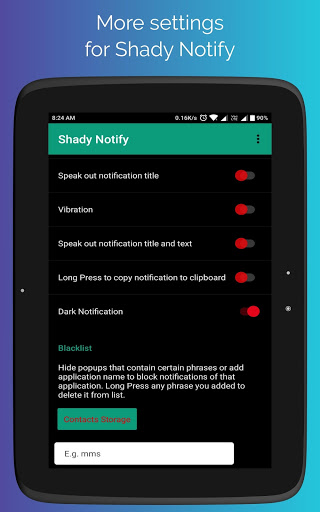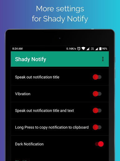 2) يمكنك تنشيط وضع TTS فقط للمقبول، مع قراءة هذا التطبيق بصوت عال جميع عناوين الإخطارات .