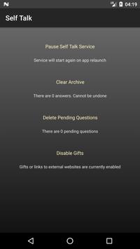 Past Q/A are stored in Archive. Self Talk may publish the content anonymously. To see what others are asking and what answers are being received by others, check the Menu>Self Talk Forum. You can share your own particular Q/A via social media or email etc., by tapping the Share button in the Archive page.