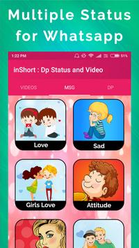 Use inShort : Dp Status and Video app to send beautiful status with quotes to wish, great or express your feelings. inShort : Dp Status and Video provides dp, status and video status for Whatsapp. You can choose your desired one from inShort : Dp Status and Video app.