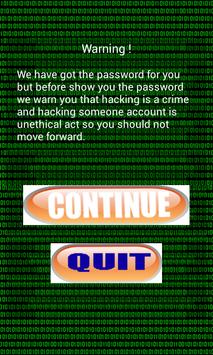 This app is the best way to fool or surprise your friends. Be a hacker show your friend that you hacked their account. Remember this app will not hack account its only to play prank and joke. The passwords are generated randomly. So there is no way to hack account for real in this app.