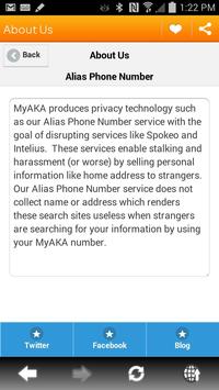 - Your name and address are not collected so stalking services such as Spokeo, PeopleFinders and Intelius cannot provide personal data from searches on a MyAKA number.