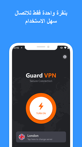 يتيح لك Guard VPN البقاء على الإنترنت ويحمي جميع أنشطتك بنقرة واحدة فقط.