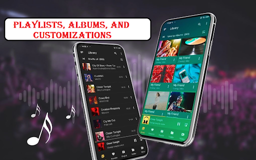 مشغل موسيقى أنيق وقوي وسريع مع تصميم أنيق. يتيح لك مشغل الموسيقى Pro إدارة جميع ملفات الموسيقى الخاصة بك بسرعة وسهولة. هذا مشغل الصوت يدعم جميع أنواع ملفات MP3 و MIDI و WAV و FLAC أو تنسيقات الصوت الأخرى تقريبا. بسهولة تصفح وتشغيل الأغاني الموسيقية عن طريق الأنواع والألبومات والفنانين والأغاني والمجلدات.