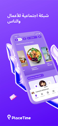 placeTime ليس مجرد خريطة تفاعلية ، ولكن أيضًا شبكة اجتماعية كاملة حيث يمكن للجميع إنشاء ملف تعريف شخصي وتجاري ، وإجراء نشاطهم الاجتماعي المعتاد ، وتطوير علامة تجارية شخصية ،الأعمال أو مشاركة أحداث الحياة.