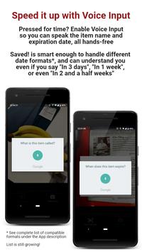 *Premium in-app purchase features are in the works. The features provided in this release are available to all users, including Voice Input, Reminders, and Barcode Scanning. However, all users have a limit of 100 food items that can be stored simultaneously. Future plans will raise this cap, but may come at a price depending on demand.