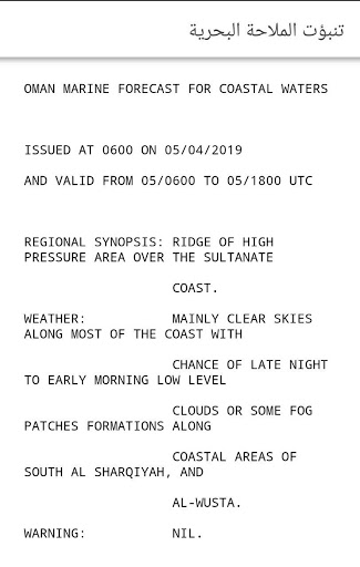 4- يحتوي على تحذيرات الطقس صادرة من الارصاد الجوية العمانية .