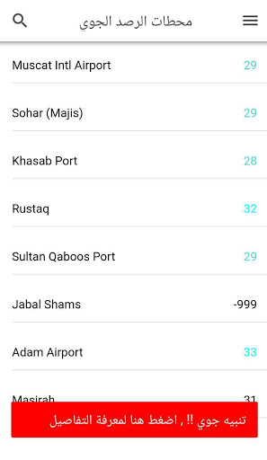 1- تطبيق مرتبط بمحطات الطقس المنتشرة في انحاء السلطنة المرتبطة بالأرصاد الجوية العمانية بتحديث مباشر منها .