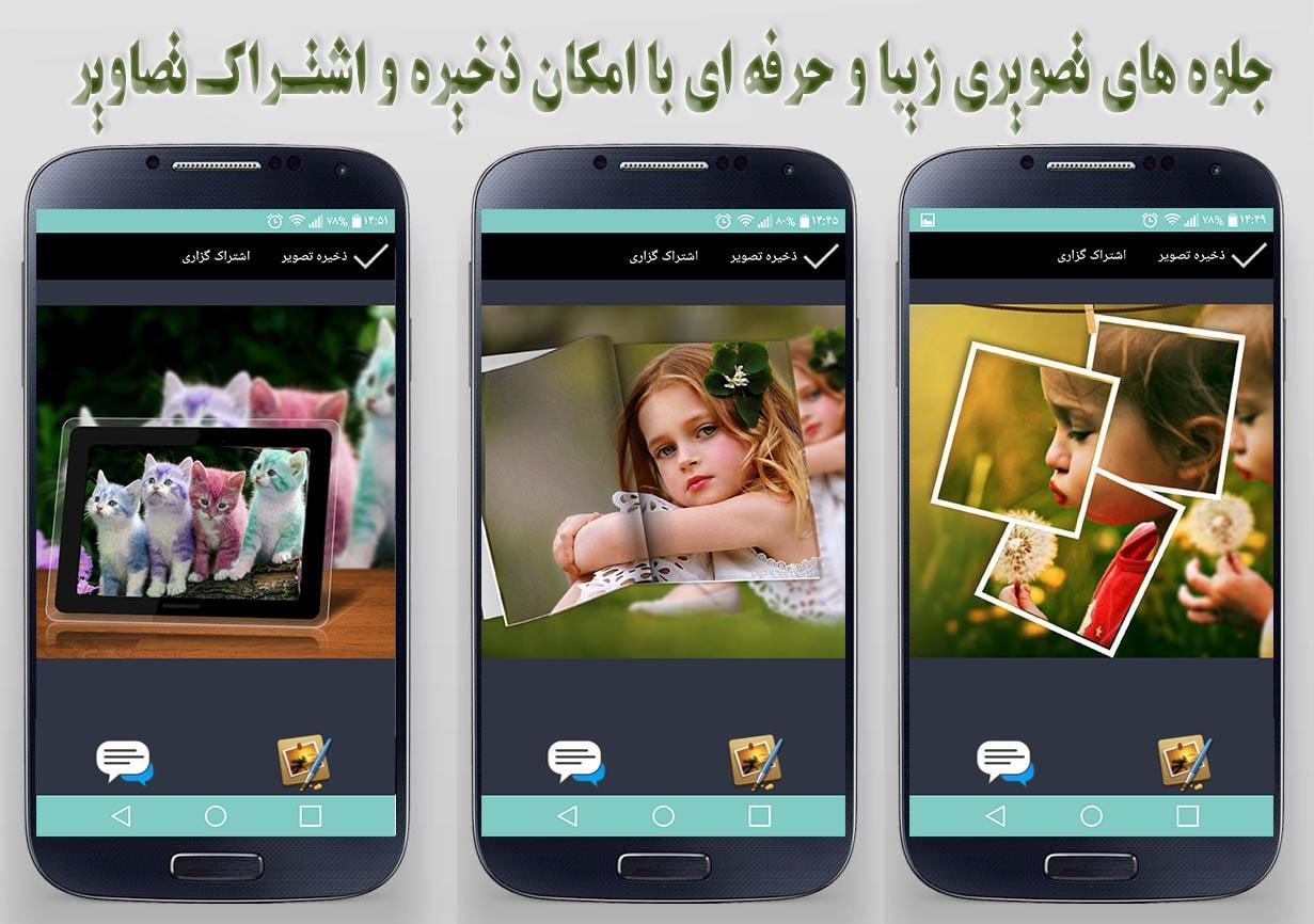 را تنها با چند کلیک متفاوت تر از همیشه داشته باشید و برای عزیزانتون در تلگرام و یا ... ارسال کنید یا اینکه در گالری ذخیره نمایید. این برنامه دارای جلوه های فوق زیبای تصویری در موضوعات مختلف می باشد و همین طور شما میتوانید با استفاده از آن عکس نوشته های زیبا ساخته و با دوستانتان به اشتراک بگزارید ?