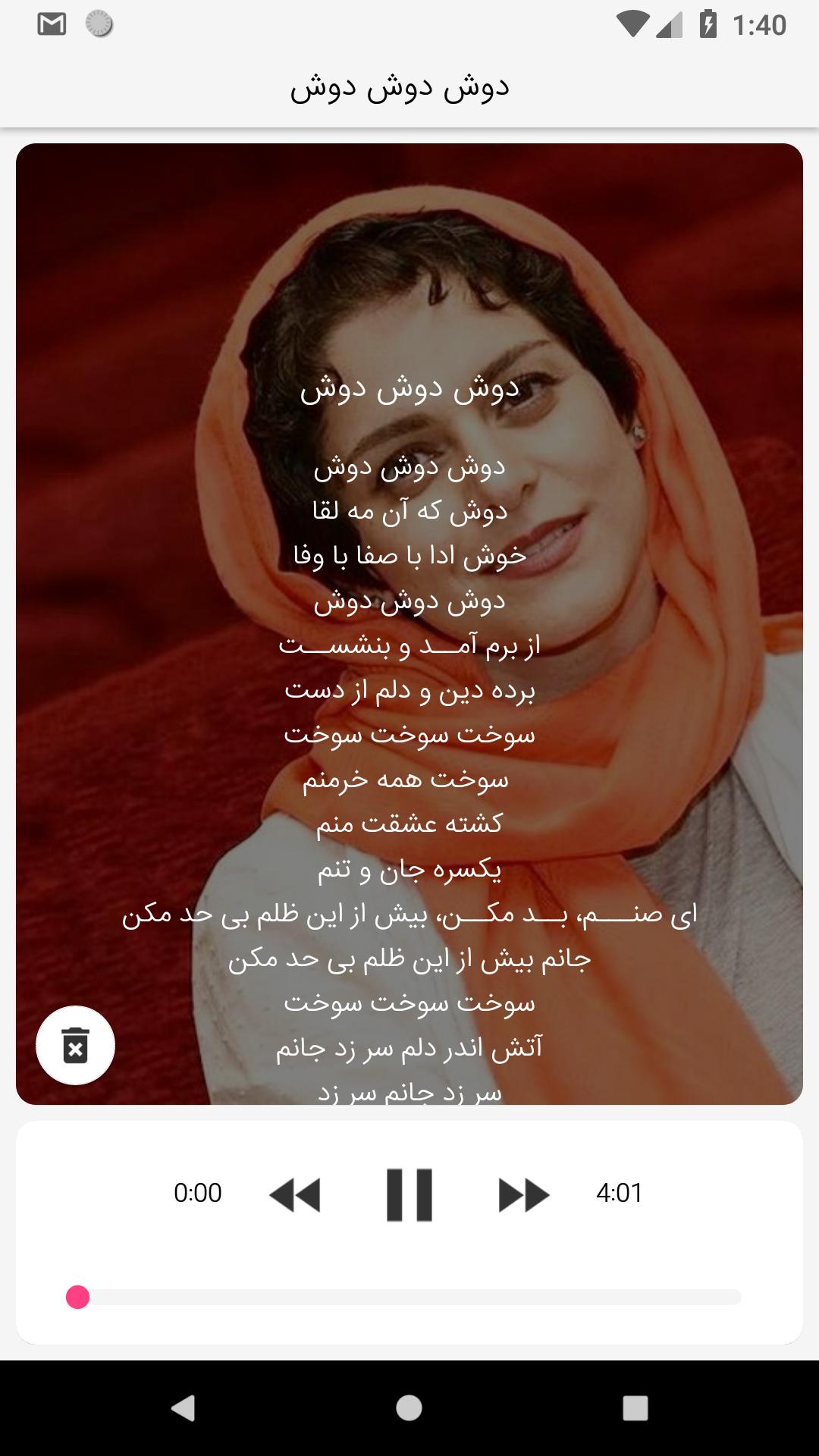 نرم افزار پیش رو شامل مجموعه ای کامل از غزلهای زیباست شامل غزلیات مولانا ، رباعیات خیام، غزلیات حافظ ، سعدی ، شعر نو، و غزلیات دیگر شاعران پارسی که با صداهای برگزیده و دلنشین در نوع خود سعی دارد جزو بهترین ها باشد
