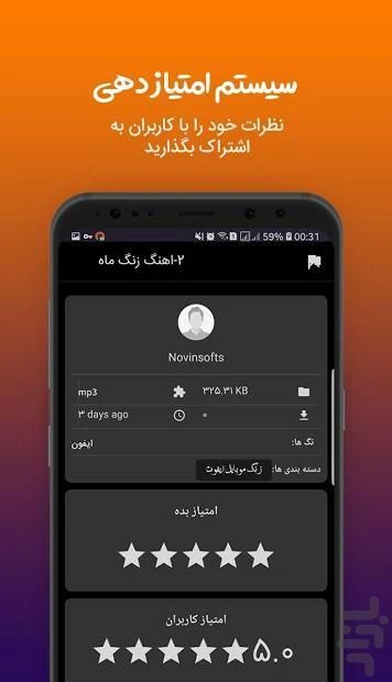 - شبکه ی اجتماعی اهنگ زنگ ها با امکان ارسال اهنگ های شما و اشترک گذاری با کاربران